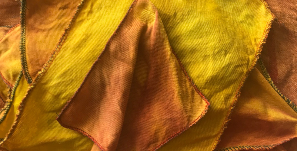 Pendant que cela refroidissait, je me suis intéressée à ce qui restait dans mon étamine et surtout à la couleur que prenait mon étamine. Elle était devenue orange vif ! J'ai été séduite et je me suis dit que franchement ce serait dommage de ne pas en profiter. Que pourrais-je donc bien teindre avec cette mixture ? Mes lingettes de cuisine pardi ! Et hop hop hop en trois minute la mixture et l'étamine était dans une autre casserole, avec de l'eau et tout ce que j'avais comme lingettes propres à la cuisine. Je leur ai fait subir le même traitement que la laine sauf que je les ai fait bouillir puisqu'il s'agissait de coton ! J'ai ensuite laissé refroidir également, jusqu'au lendemain.